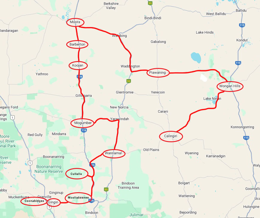 We deliver fortnightly on a Tuesday through the Wongan Hills to Moora region.